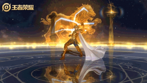与黄金射手座一样,黄金狮子座也拥有帅气的回城动作:艾欧里亚脚踏着黄金“十二星座”星盘,片刻之后如迅雷一般跃向空中!真的是又帅又霸气!