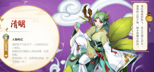 云梦四时歌清明技能图鉴是清明符灵资料,她喜欢香醇的杏花酿和人们的故事喔,很多玩家想知道云梦四时歌清明技能属性怎么样、清明值得培养吗呢,下面为大家带来介绍吧。
