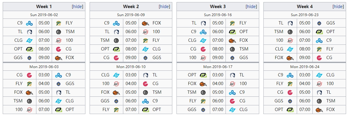 Gamepedia上放出了LCS赛区的完整赛程,如下图。