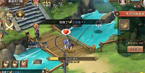 想要参加钓鱼活动就必须找到钓鱼的地方,钓鱼活动很特殊,没有引导设置。不过玩家们可以通过在希洛次门镇的桥上进行钓鱼活动,在钓鱼前只需要点击一下河水上的小鱼标志就行能够进行钓鱼了。