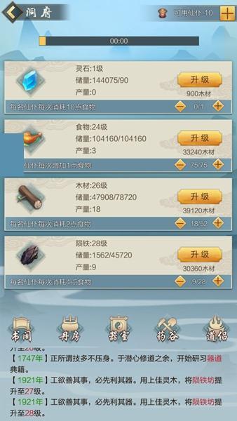 洞府的资源主要有灵石、食物、木材、陨铁,这些东西在我们平时修仙中有着很重要的作用,当然玩家也可以根据自己的情况来选择优先升级什么,比如说洞府内生产的话仙仆消耗的食物量太高,不如将仙仆主要分配在另外三种资源生产线上,配合木材提高资源生产等级,当食物足够召唤仙仆后招募新的仙仆,具体情况还是要根据玩家的喜好来决定,并没有什么特别的规则。