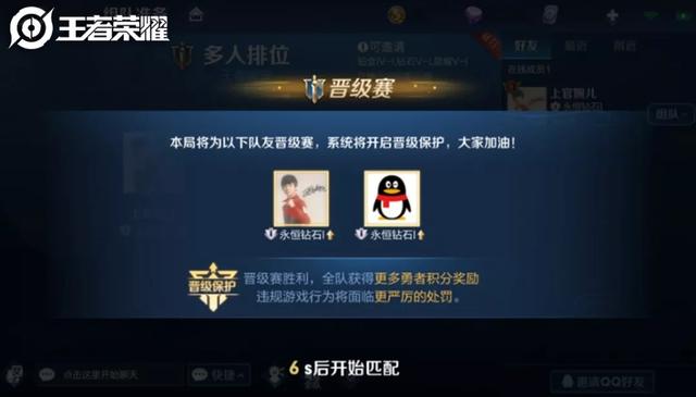 队伍中一旦存在晋级玩家,则对局会受到晋级保护,并提示给其他队友。晋级成功则全队获得更多勇者积分,如果失败但晋级玩家的MVP分较高,该玩家也会收到补偿奖励。但如果在晋级赛中出现捣乱行为,会被扣掉更多的信誉积分,这样队友才能更认真的对待晋级赛。