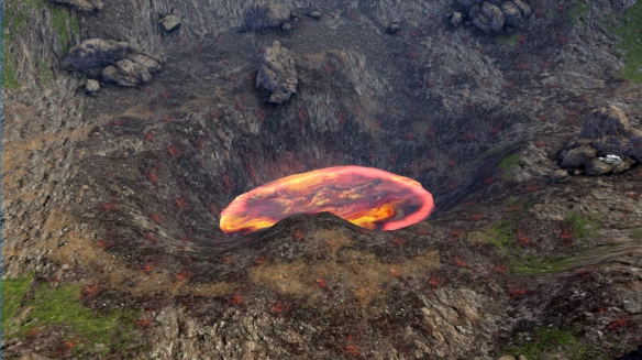 双子岛下岛热浪来袭,前方好像有个火山口,此时你感觉浑身冒汗,沿着边缘走,咦,地上好像有东西,小心点,别掉下去了!