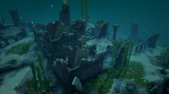在双子岛继续往下游,看到一片废墟,它好像见证着一个时代的没落,曾经辉煌的建筑也石沉大海,可能遗留下了什么。