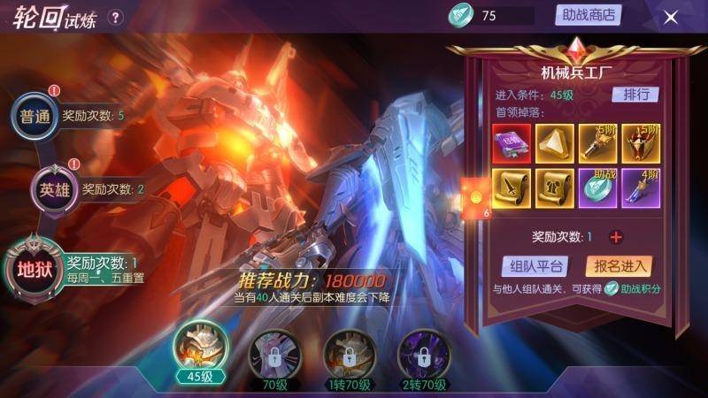 轮回试炼:轮回试炼就是俗称的副本玩法了!击杀中任务中的boss获取对应奖励,其中BOSS会掉落副本经验书,各位小伙伴使用经验书会获得大量人物经验呢。同时也可以也可以获得高阶装备分三个级别