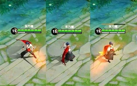 目前官方虽然还未透露具体技能机制如何,但也可通过实战效果推测一二,比如新英雄东方曜是一位没有蓝条的英雄,取而代之的是三段能量,每当东方曜释放一次技能便能增长一段能量,若能量积满,则东方曜身上会出现光效,且全技能强化并刷新(小编推测为强化效果),类似老夫子的被动,如下图所示: