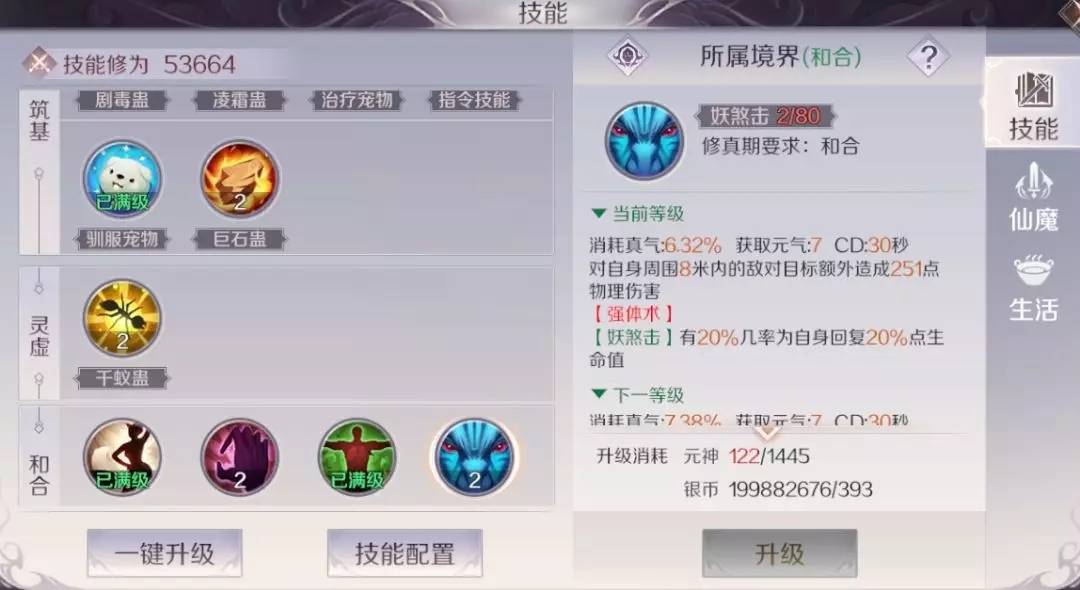 其中技能妖煞击的伤害很可观,修真者需要计算好妖煞击的冷却时间,保证每次切换狐形态后,妖煞击都是可释放状态。