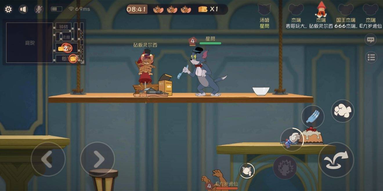 抓得时候就盯着一个无脑抓,就算别的老鼠在推奶酪你也不用管。在你抓到第一只老鼠后,找到火箭,绑上去后,放老鼠夹,如果附近有花瓶,就拿个花瓶(因为花瓶会打掉老鼠的一半气力值,再打一巴掌老鼠就会被抓了)在附近等老鼠回来救队友(送死)。如果你绑上火箭的时候没有老鼠夹和投掷物。就让老鼠救,然后救完落下的一瞬间,再打。因为老鼠刚被救下的时候,气力值是空的,打一下就倒了。绑上去继续等,这样重复来。