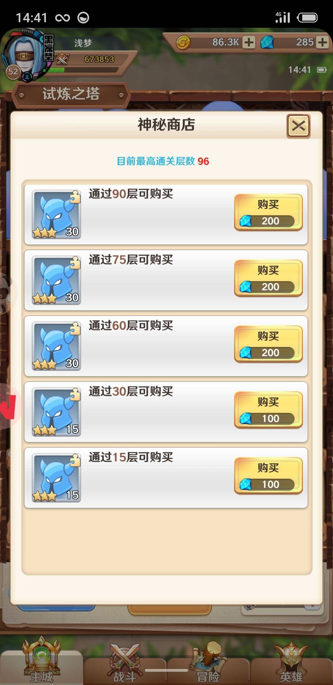 2,钻石哪里用,千万别抽卡,因为这游戏没保底,抽卡没用,钻石萌新首先留3000钻石,试炼塔45关之后可以花3000钻石买100许愿币,那是拿资源的地方,用来升级角色用。然后多余的钻石去商城买珠子500要150钻石血赚,买副本次数,刷悬赏,当然闲多还可以买冒险次数,这里不建议买竞技场