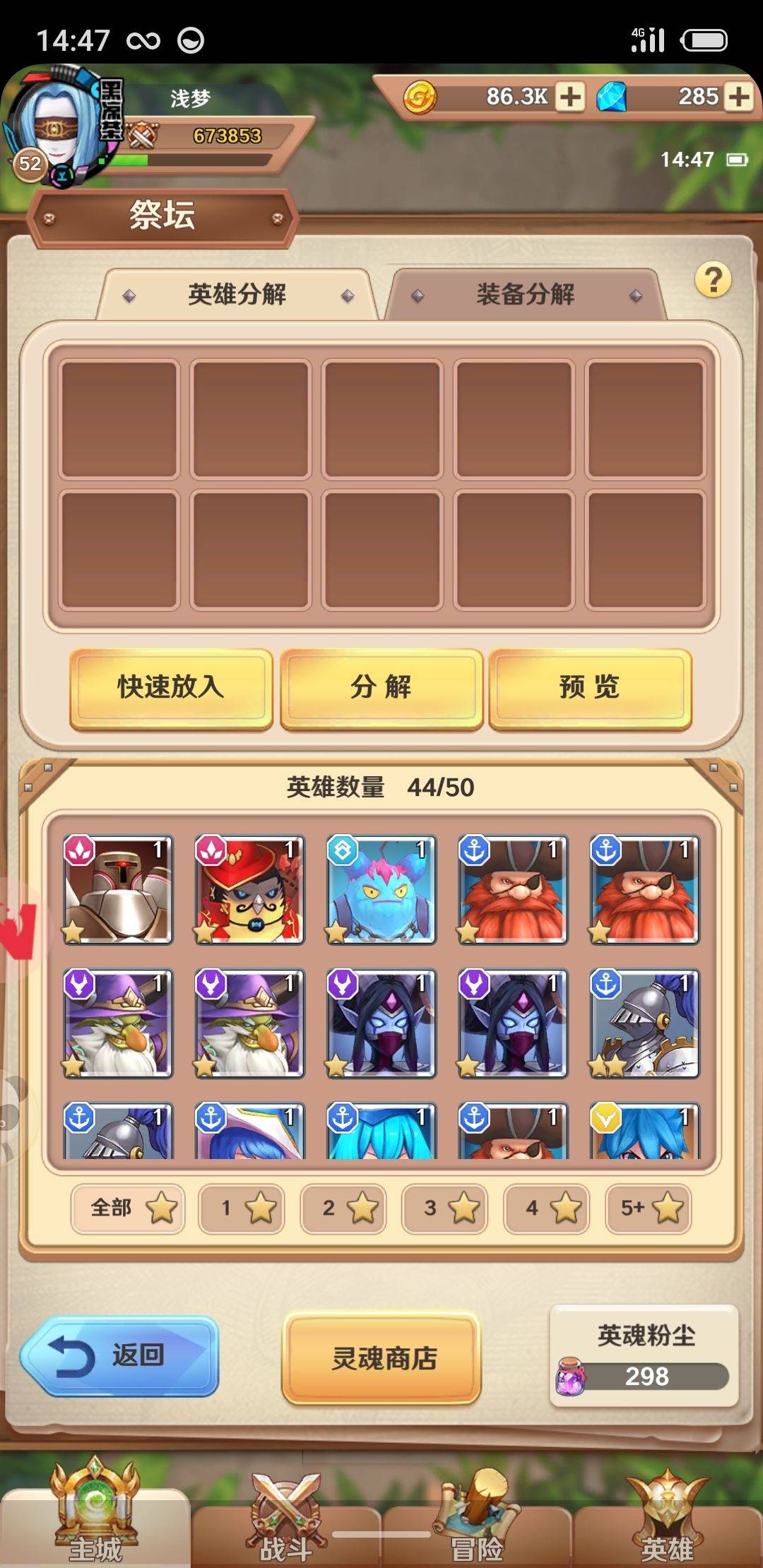 3,祭坛别碰,碰了的坟头草好几米高了,尤其是英雄,拿来合成都不要分解,性价比特别低。合成性价比特别高因为你抽不出你想要的只能靠合成。