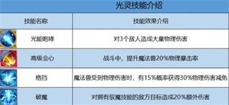 魔法兽能否为玩家带来作战效益,最关键的就是技能,否则就只能充当吉祥物。那么,光灵技能是什么?如下: