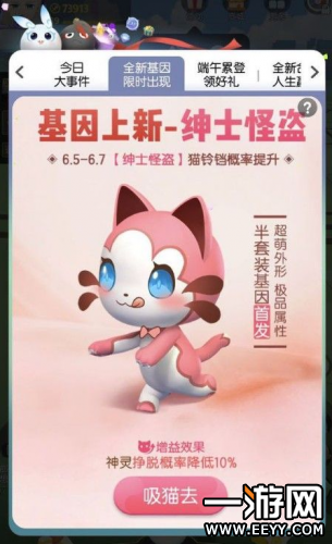 绅士怪盗是最新出的半套装,拥有超萌的外形,极品的属性,增益效果是什么挣脱率降低10%,活动时间没6.5-6.7日。