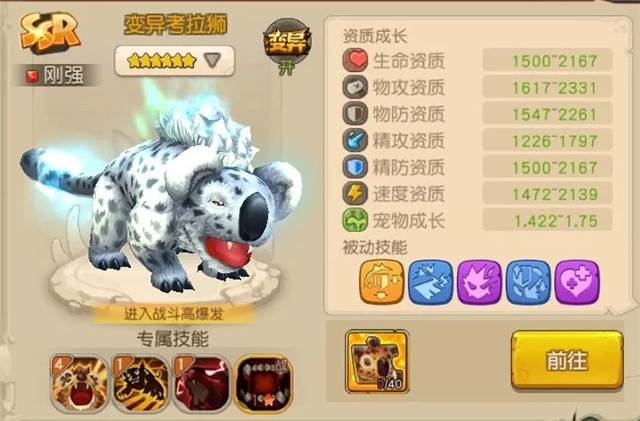 解析:考拉狮速度不佳,考虑生存和续航,同时被猫攻击能稳定触发暴怒。在加点上可以考虑体耐,单攻暴击几率不像猫和角斗鸟。追求稳定可舍弃獠牙。后补技能上追击最好。
