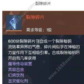 获取方式:由600块裂隙碎片合成一个裂隙密匙