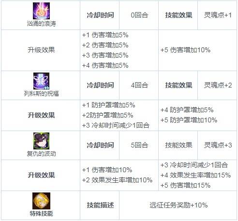 用破坏之力攻击全体敌人,以50%的概率在2回合内造成防御力城少。复仇的波动随着使用的次数伤害量会增加,最多重叠3次灵魂+3,冷却5回合