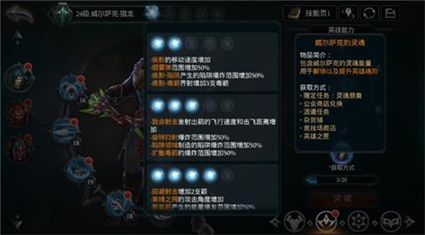 我们可以点击英雄头像,进入英雄列表后可以看到英雄的提升途径,第一排的就是装备提升,而第二排就是魂阶提升。魂阶提升之后英雄的各项技能效果都可以得到提升,例如威尔萨克猎龙的疾影移动速度增加,烟雾弹范围增加50%,陷阱的爆炸范围增加50%,毒箭齐射时增加3支毒箭等。这些效果可以让我们在竞技场和副本中更加灵活,伤害更高。