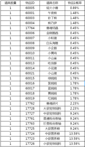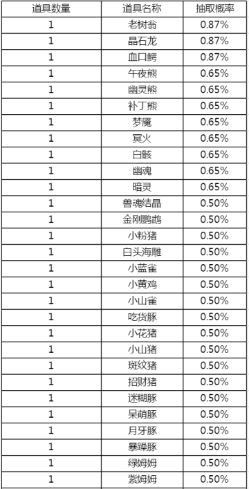 2、每抽10次必得A级宠物,每次抽奖获得5个物品