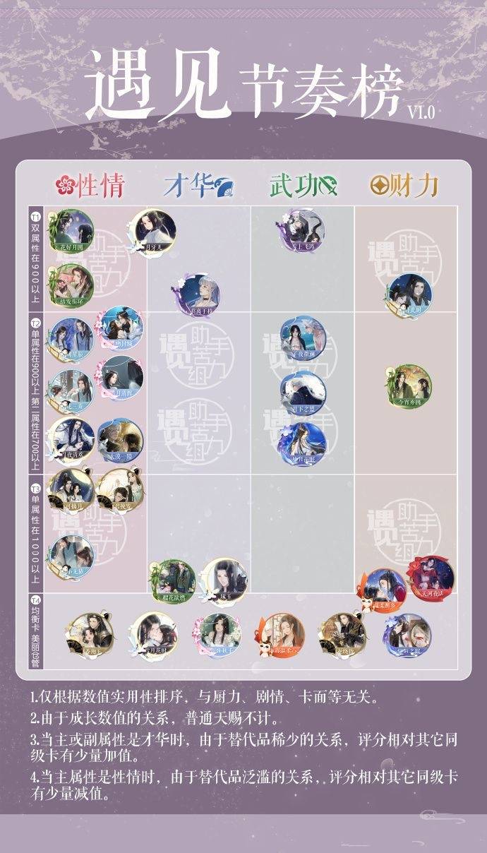 节奏榜只标注了限定天赐,卡牌不够的可以根据评分自行料酌养普通天赐或者稀世。