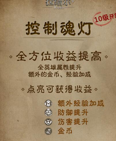 我们可以从额外的金币何额外的英雄经验里面得到,可以为角色到来各种防御和伤害加成。