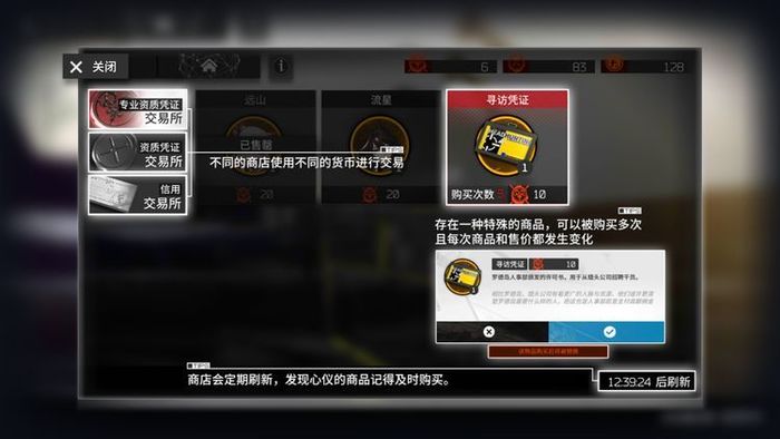 采购中心是游戏里的物资购买设施,商店内内容定期刷新,且可使用多种货币进行交易。不同的商店使用不同的货币进行交易。商店会定期刷新,发现心仪的商品记得及时购买。游戏中还存在一种特殊的商品,可以被购买多次且每次商品和售价都会发生变化。