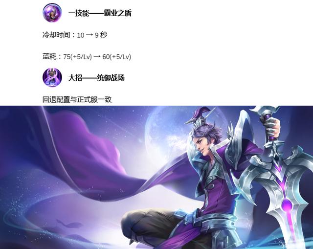 刘邦增强:1技能的CD和蓝耗降低,大招数据全部回调,再次拥有给目标套盾的效果。