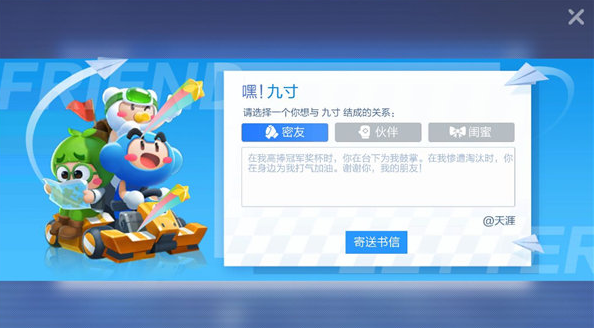 每天亲密度上限是100点,如果经常在一起玩的话亲密度会提升的非常快。游戏中目前有三种亲密度关系,当大于6点亲密度的时候就可以向该玩家寄出书信成为挚友,之后会慢慢升级。