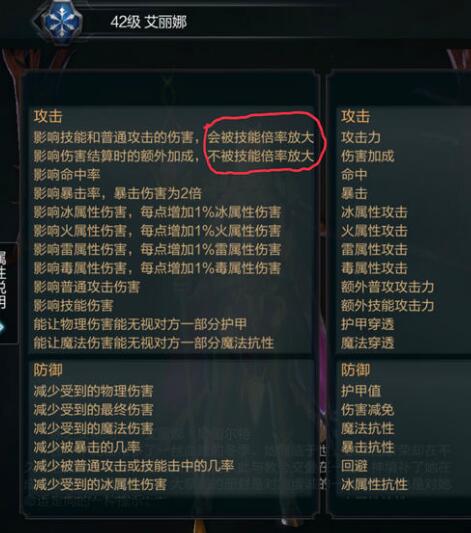 第一行是攻击力的说明,第二行是终伤的说明,注意看红色圈圈,攻击力和终伤的最明显差别就在于,攻击力“会被技能倍率放大”,而终伤不会。这个解释很有误导性,让人误以为“会被倍率放大”应该更好。