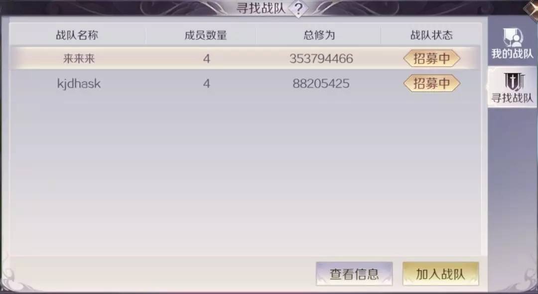 没有战队的修真者,可以使用寻找战队功能,选择心仪的战队加入。