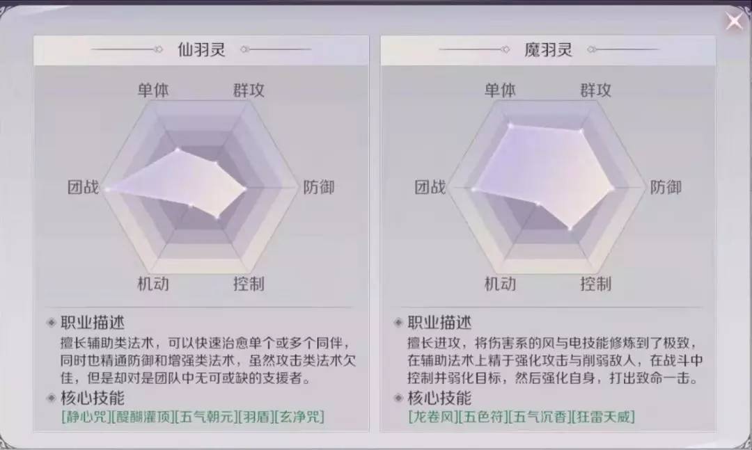 魔羽灵机动性强,持续伤害高,单体控制能力出色(五色符、神之封印),还可给队友增加攻速、施法速度、冷却速度等。
