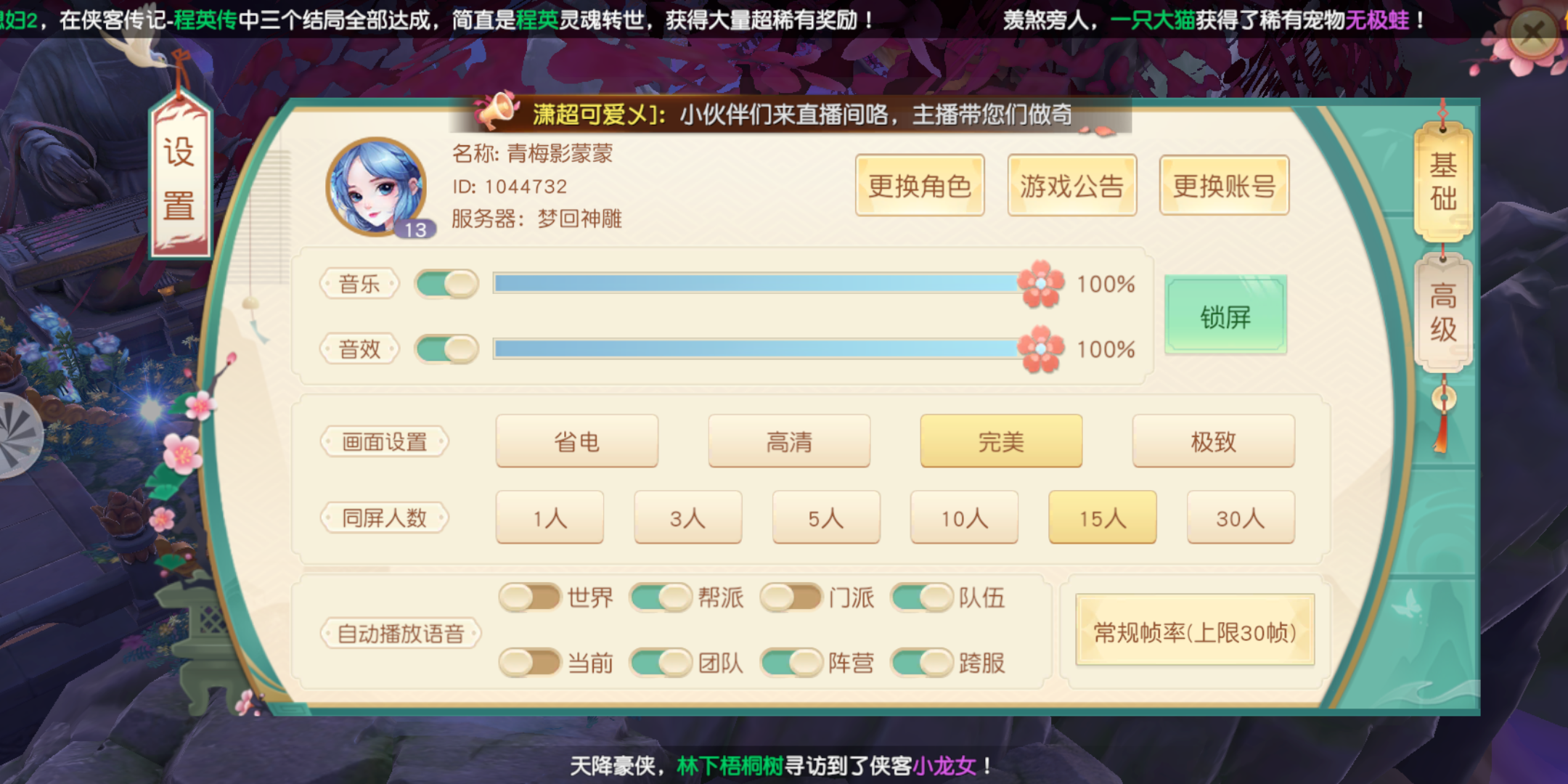 这里建议大家画面设置成高清,同屏人数设置成5人就可以了,同屏人数调低了还能看到自己华丽的时装和帅气的坐骑哦,遇到这问题的玩家朋友们赶紧去尝试一下吧,相信很快就能解决了。