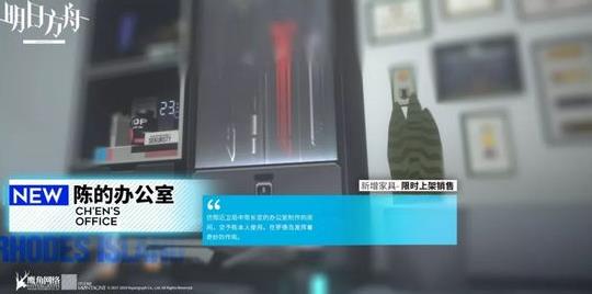 明日方舟将于七月九号开新章节靶向药物,同时还会有一些主题家具开始上架售卖,陈的办公室就是这次开启售卖的主题家具,那么陈的办公室这个主题家具怎么样呢,怎么获得呢,下面一起来看看吧。