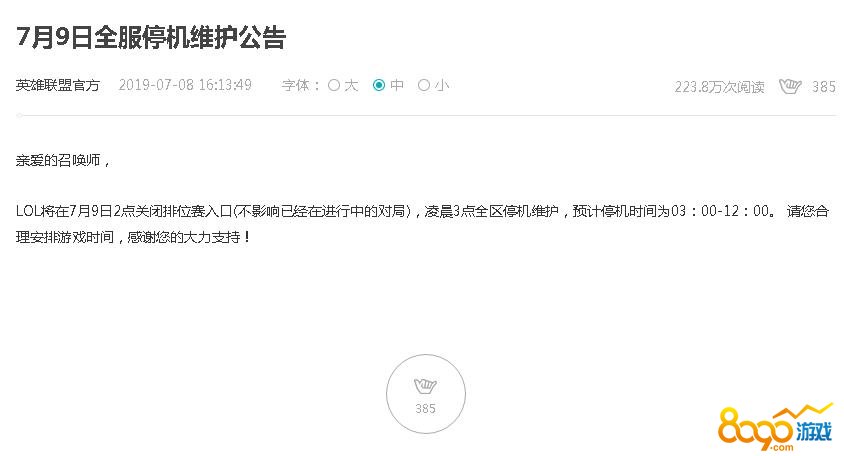 LOL7月9日更新维护到几点结束 ,7月9日更新维护内容一览。LOL的玩家在7月9日凌晨发现排位进不了是怎么回事呢?原来是因为7月9日进行了更新,那么7月9日更新维护到几点结束呢?接下来小编就为玩家们带来7月9日更新维护内容一览。