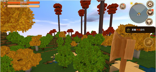 我们大部分都会选择随机,进入地图后发现有很多东西,其中有很多树木,这是用处很广的材料之一,可以用斧子收集。而泥土块的话可以用铲子收集。水是不能直接采集的,需要特殊的工具。