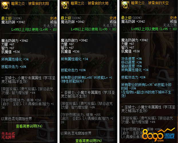 之前就给大家介绍过了,奶爸首饰都是选择的太阳,三件太阳首饰对于奶爸而言,同样都有着荣誉力智+4%的效果,唯一的区别是面板提升,所以考虑升级顺序时,面板提示是唯一的对比依据。