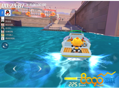 因此,比赛中段时,玩家需要乘坐小船到对岸上岸,上岸之后会看到几个金字塔,然后在地图最外面的赛道里会发现一个宝箱,金色的发着光,这就是任务宝箱。经过这个宝箱,就算完成任务了。