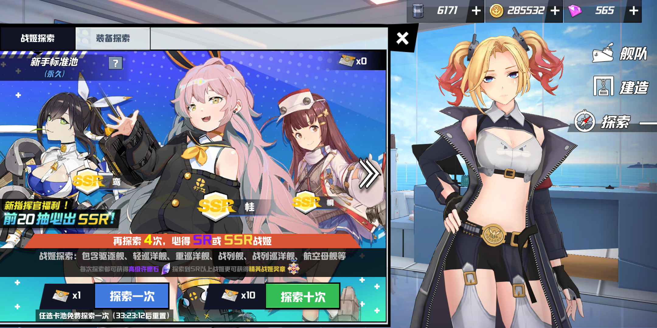 首先想要获得新的船有五种方法,分别是探索、建造、许愿、兑换、活动,这五种方法我们现在就来一一给大家介绍。首先第一种方法也是最常用的方法就是探索了,玩家们可以利用探索来获得各种各样的船,但是每次探索都需要消耗一个介绍信,而介绍信现在比较好获得,20次探索必出一个SSR也很良心,说不定你20次出了两个也不一定哦,关键还是要看运气怎么样。