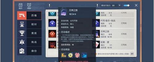 二、当开启日常任务时优先做日常任务,比如每天的“王牌之旅”(主线做在 19 级时会作为主线教程)可以在右边的任务栏或者顶部的活动页面找到。王牌之旅的经验多,进度快,仅需几分钟时间就可以刷完,还有其他奖励。其他的日常可以在活动页面找到,有时间的可以打跨服战场—自由一日,经验丰富,但是时间较其他的活动长,大致需要 10 分钟,错过日常的没关系,可以在活动的补课界面找回经验(金币能找回70%,大概需要 1 万左右金币,钻石能找回90%,大概需要 100 钻石)