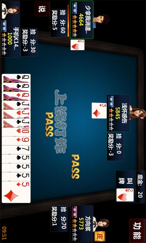 2、选择时限为30秒,超过时间限製默认选择黑桃做主花色。