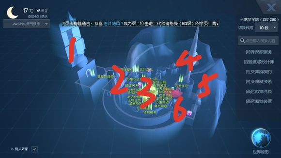 以上的六个位置就是地图中对应的建筑了,玩家朋友们如果要去哪里只需要根据指示去就可以咯,只要多跑几次差不多都能找到相应的位置,对新手玩家们有很大的帮助。另外3这个地点中间有一个喷泉,也就是许愿池。大家可以通过许愿池来获得各种各样的奖励或是BUFF,具体能得到什么还是要看自己的运气如何了。