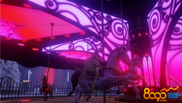 小编这里不得不夸赞一波美术啦,红色的光源,在这个花纹之下骑着白马上上下下也太戳少女心了吧!!!花纹有点像蝴蝶翅膀,这种地方还真是让人小鹿乱撞呢,这么好看的地方当然要拍照留恋最好啦,玩家可以旋转屏幕,就能看到全景模式下的景象了。