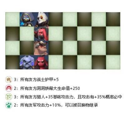 如果玩家有机会升级到就人口的话还可以附加上暗之灵、飞机、海啸追捕者、风暴萨满、炸弹人中的一个来增加伤害。战兽猎这套玩法的核心就是小黑,三个战士两个兽人三个猎人是必须的。
