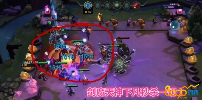 在吹之前大家先看图吧,剑魔一刀劈下去直接砍出4个1516,thshy的天神下凡也不过如此吧,关键自己还通过科技枪把血回满了。在之前版本,剑魔只是个拿来凑数的英雄,就和剑姬一样,虽然本身有很高的aoe输出,但是太脆了,经常都是放不出技能就没了,所以就算是玩6剑士也只会选德莱文当大哥,剑魔只能打工当炮灰,现在剑魔蓝耗降到了25点,技能更容易放出来了,现在三星剑魔的基础伤害是1000血,要知道两星龙王吐一口也才不过450血,所以现在完全可以考虑围绕剑魔来打。