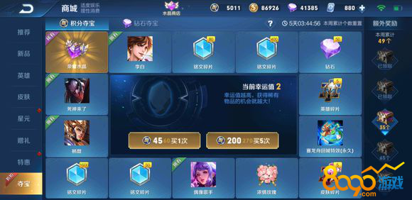 其实大家可以等积分夺宝打折,比如优化了太后之后就在打折,至少可以省下五百元,还有一种不科学方式就是等服务器更新的时间,据说概率会大一点。最后一种方式就是.战令币,战令币每赛季能换2个积分夺宝券,不过还是几率太低太低了。