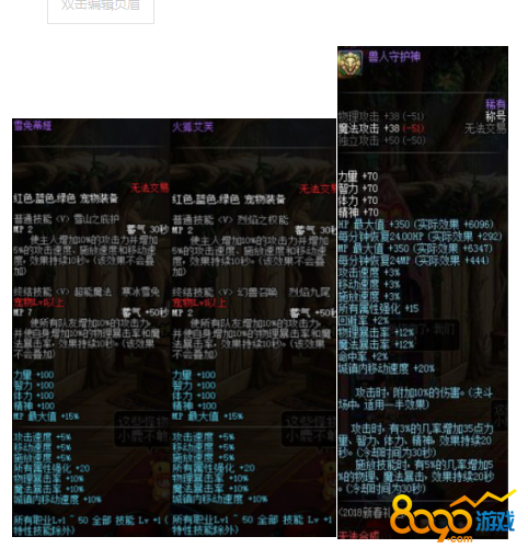 2018新春宠物自选礼盒包括了雪兔蒂娅,火狐艾芙,兽人守护神,前两者都是红色 蓝色 绿色宠物装备,具体属性如下。