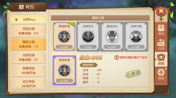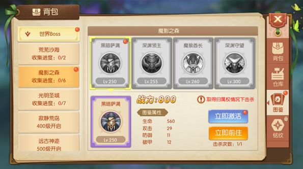 那么问题来了,图鉴是什么,怎么激活呢,我们先来了解一下图鉴,图鉴里收录了大量的boss,其中包括世界BOSS、BOSS之家、永恒禁地、魔域BOSS、星灵神殿等地方的BOSS。玩家只要击杀BOSS,即可激活对应的图鉴,击杀的boss等级越高,能提升的战力也就越高。不过要在取得归属权的情况下才可以哦。