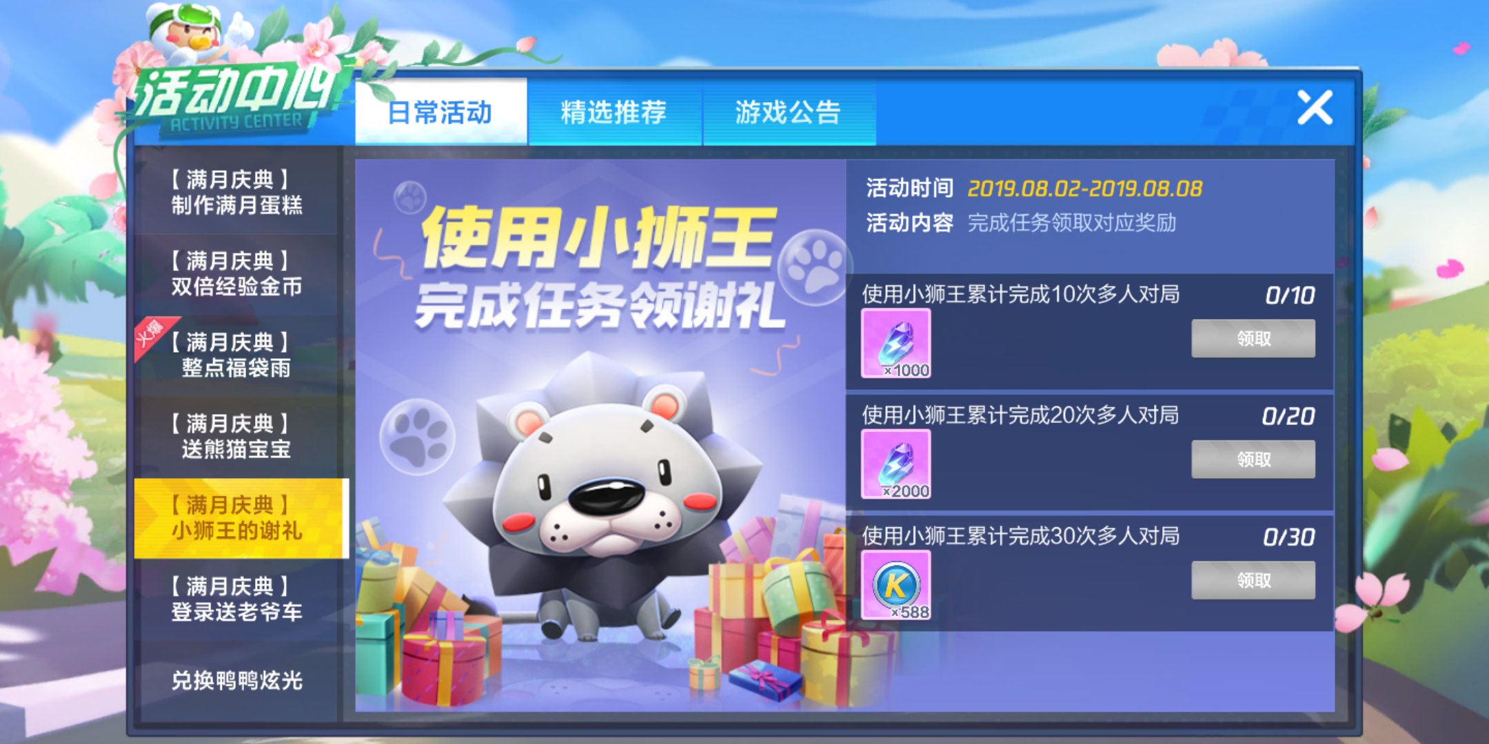 以上就是小编整理的关于跑跑卡丁车手游小狮王谢礼任务攻略?跑跑卡丁车手游攻略全部的内容啦,想要知晓更多游戏攻略,敬请关注剥皮游戏王!
