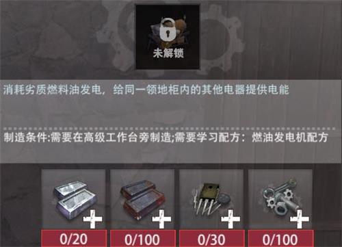 3、制作条件:学习燃油发电机配方,领地拥有高级工作台,并在其旁边制作。