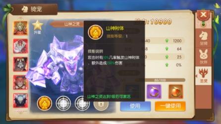 圣灵升到5级的时候就可以开始学习技能了,这第一个技能效果就是玩家在释放技能时会有几率触发圣灵附体,概率为百分之十。在圣灵附体的情况下,玩家可以获得本身的力量加成跟额外的技能效果或者伤害,而且附体的圣灵不一样,玩家所获得的额外技能也是不一样的。