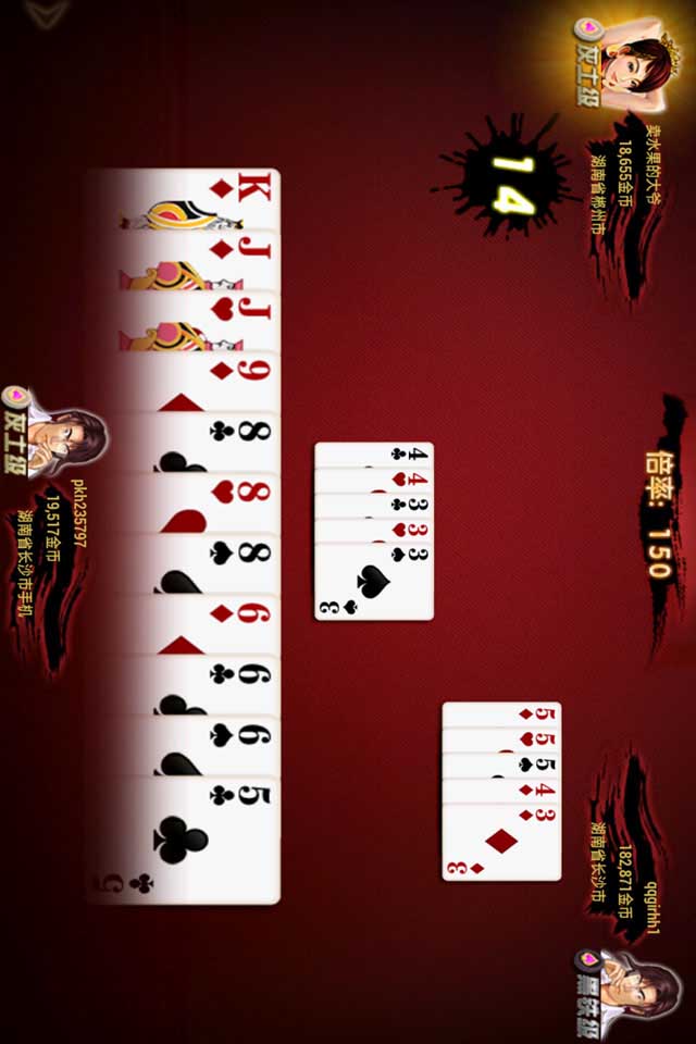 3、游戏开始时,由东家先出,每人抓5张牌,东家抓6张。