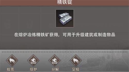 B、借助野外据点的分解机,玩家可以将成品直接分解,有机会得到精铁锭;
